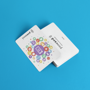 Bring the card close to the customer’s phone and it will instantly turn on your Google business card and display all your channels: Facebook, Instagram, TikTok, Linkedin. All the ones you have!